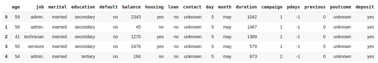 In this dataset, each row represents a client targeted by a marketing campaign. Therefore, the DataFrame contains 11,162 targeted customers with 17 different variables recorded.